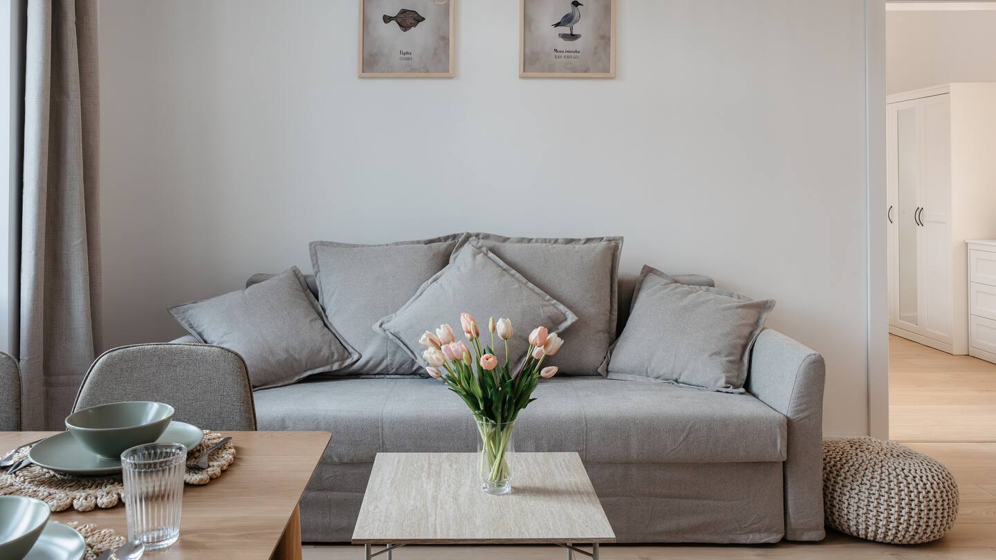Apartament 2-pokojowy o powierzchni 47 m² w ścisłym centrum Ustki. Przestronny, jednopoziomowy apartament z aneksem kuchennym, balkonem i miejscem do pracy zdalnej dla dwóch osób. Idealny na workation nad Bałtykiem — plaża w zasięgu 500 m, restauracje i sklepy za rogiem.